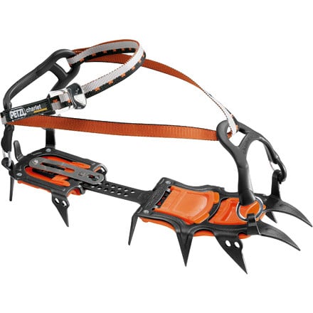 - Plastic basket (toe bale) in the front of the crampon which fits snugly over the boots front toe box, with a rear plastic basket (rear bale) which fits snugly behind the boots heel. These also include a safety buckling strap. These are ideal for 8000 meter boots, which are larger and high volume.