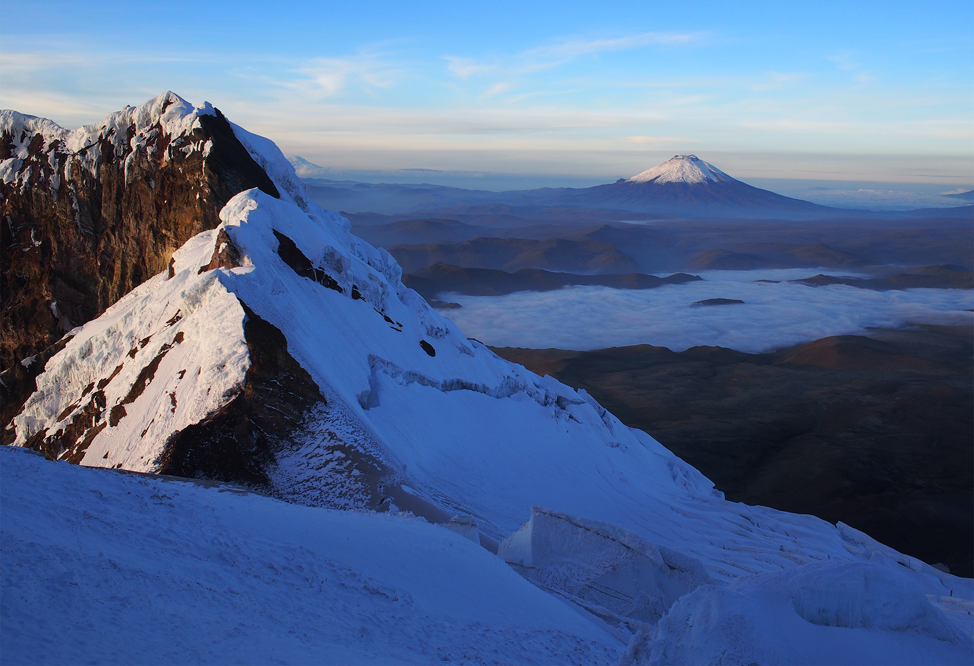 Climbers who want to experience more of what Ecuadorian mountaineering has to offer may extend this expedition with an ascent of Chimborazo (20,702 ft). Chimborazo is the tallest mountain in Ecuador. Its position on the equatorial bulge makes its summit the closest point on the earth’s surface to the sun.